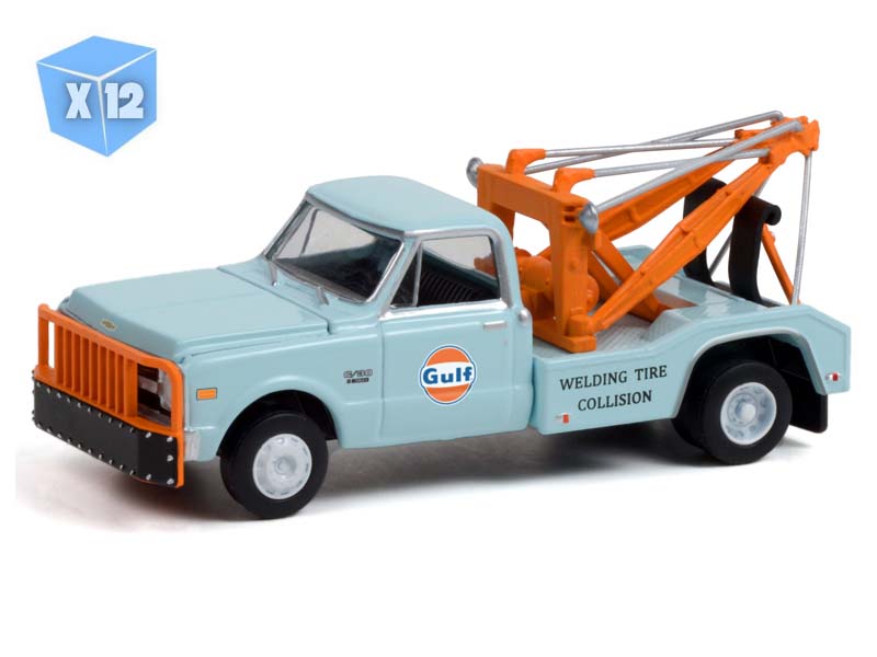 12 PACK 1969 Chevrolet C-30 Dually Wrecker Tow Truck - Gulf Oil Welding Tire Collision Diecast 1:64 Model - Greenlight 30275