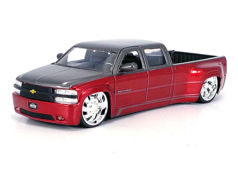 1999 Chevrolet Silverado Dually Custom KMC Wheels – Two Tone Red Metallic w/ Grey (Bigtime Kustoms) Diecast 1:24 Scale Model - Jada 35590