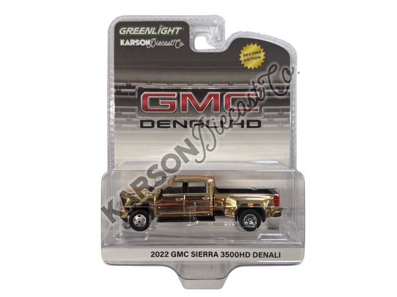 GOLD CHROME 2022 GMC Sierra 3500 Denali Dually - WHITE FROST (2nd Edition) Diecast 1:64 Scale Model - Karson Diecast Co. 51678B