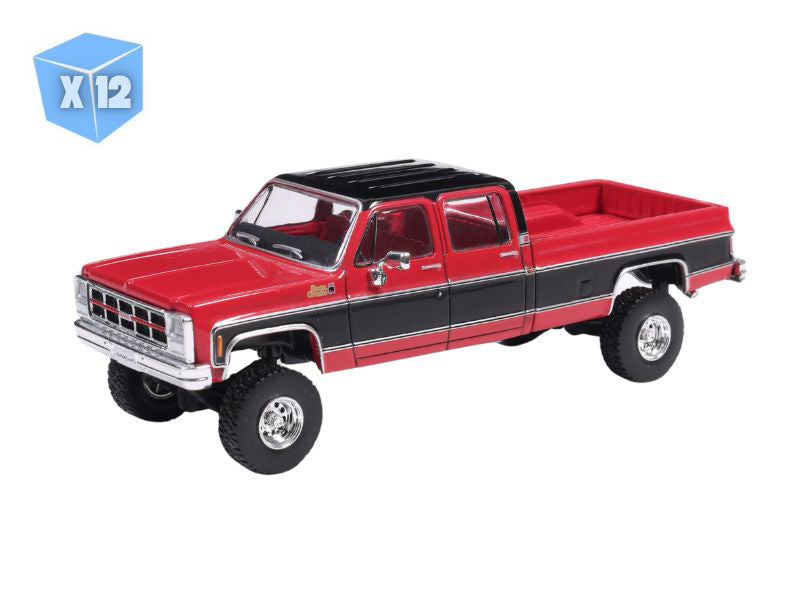 PRE-ORDER - 12 PACK 1980 GMC Sierra Classic K3500 Wideside Crew Cab Lifted Two-Tone Cardinal Red & Black Diecast 1:64 Scale Model - Karson Diecast IAPR1023