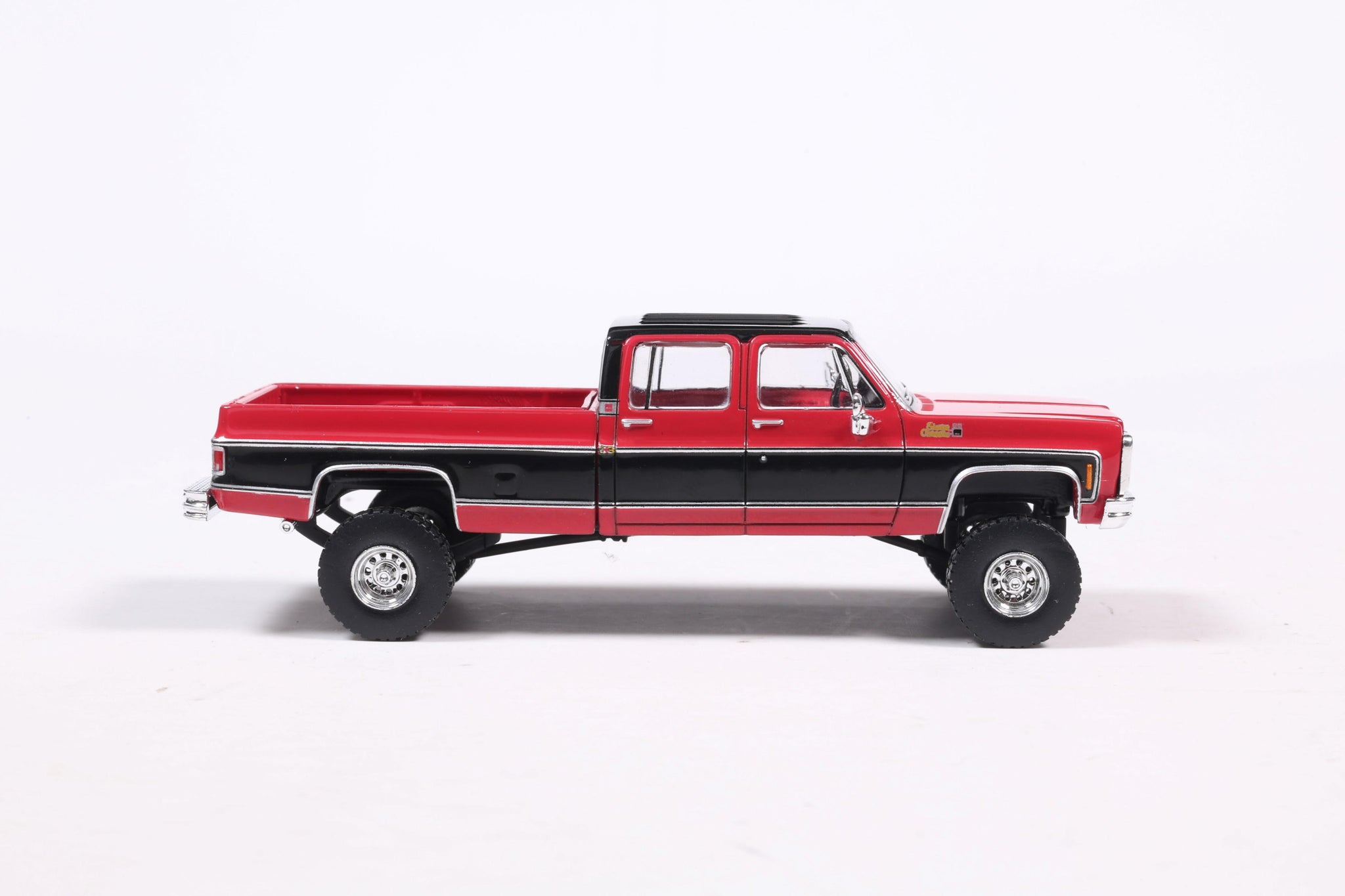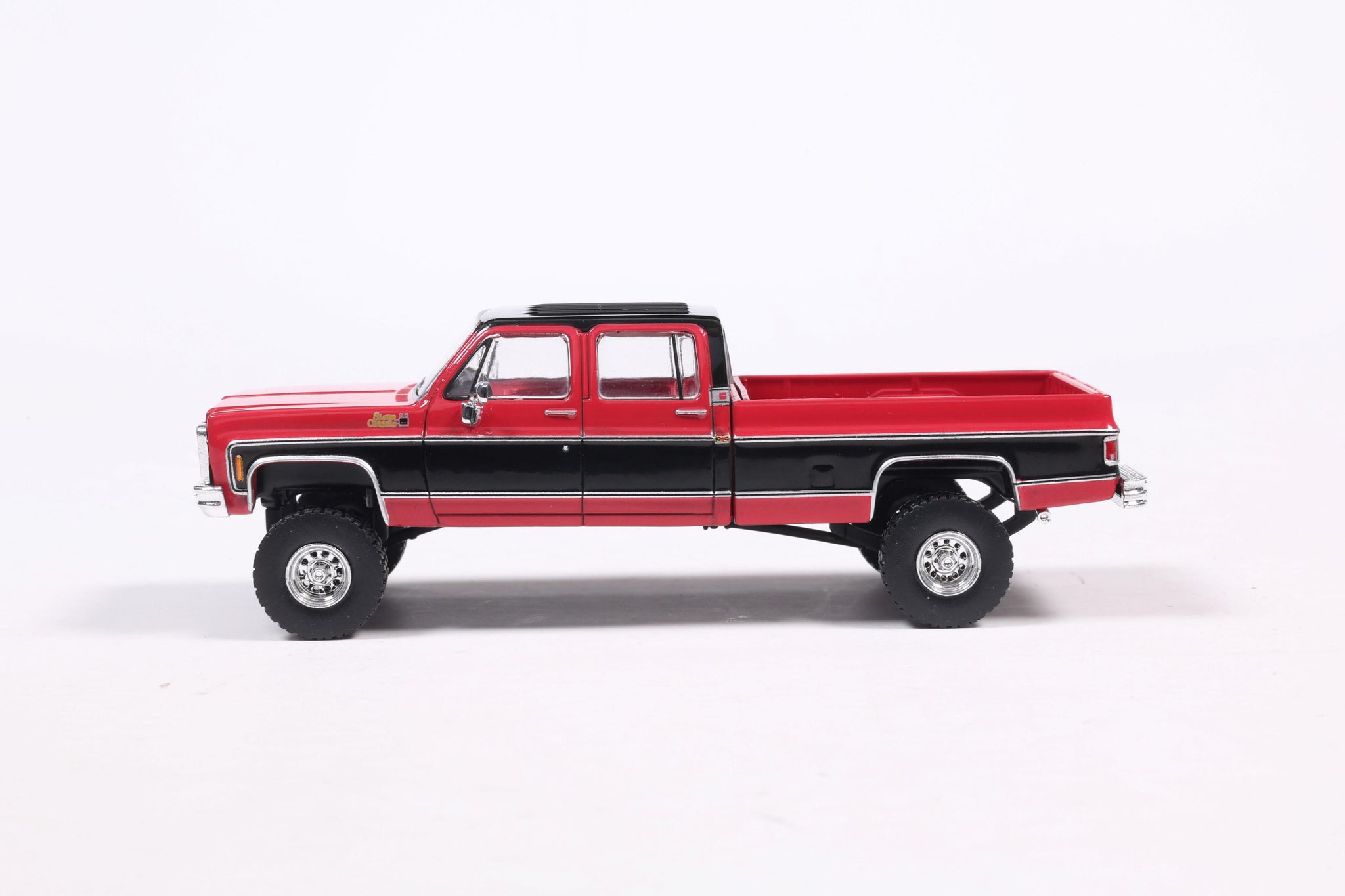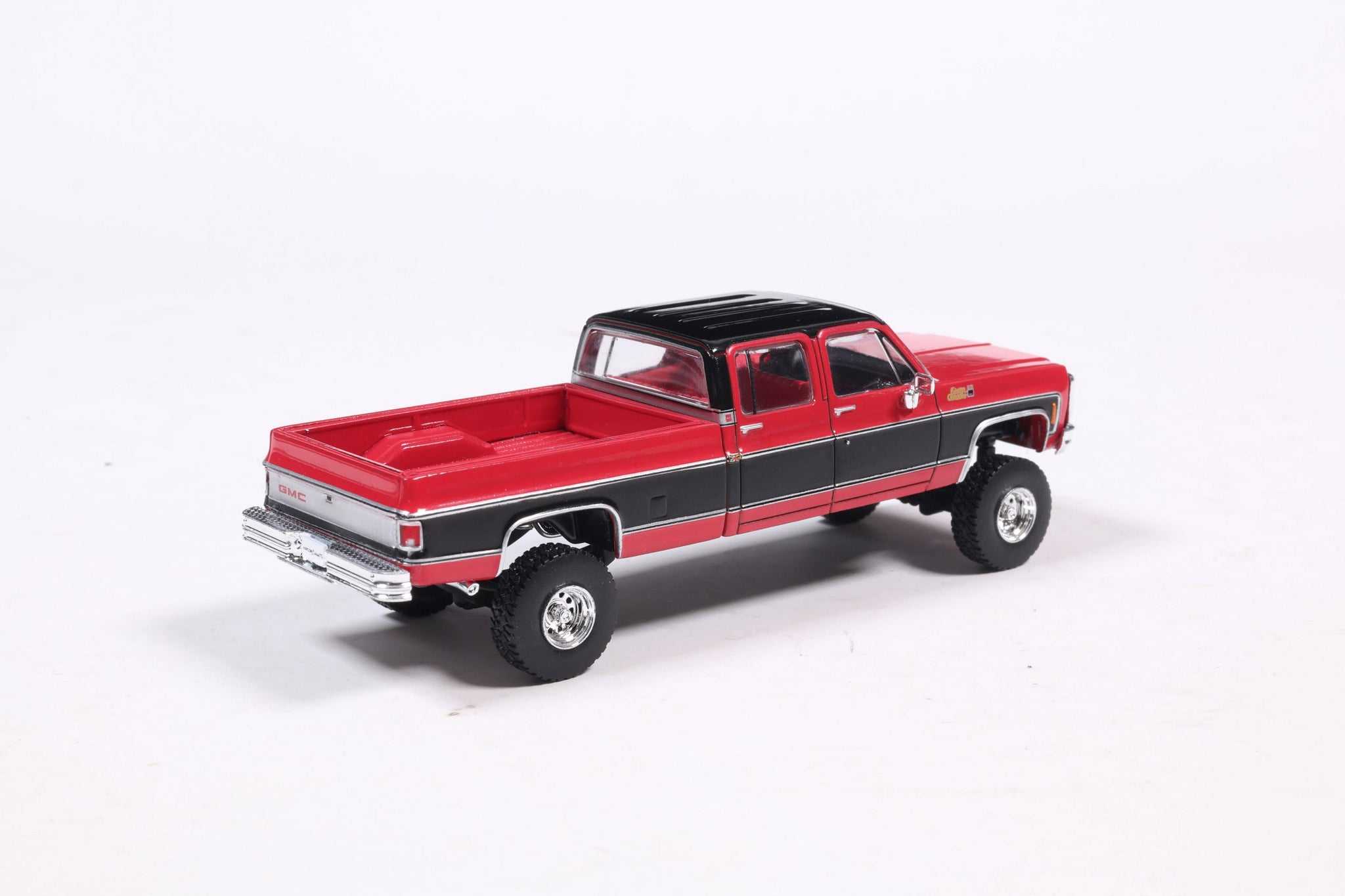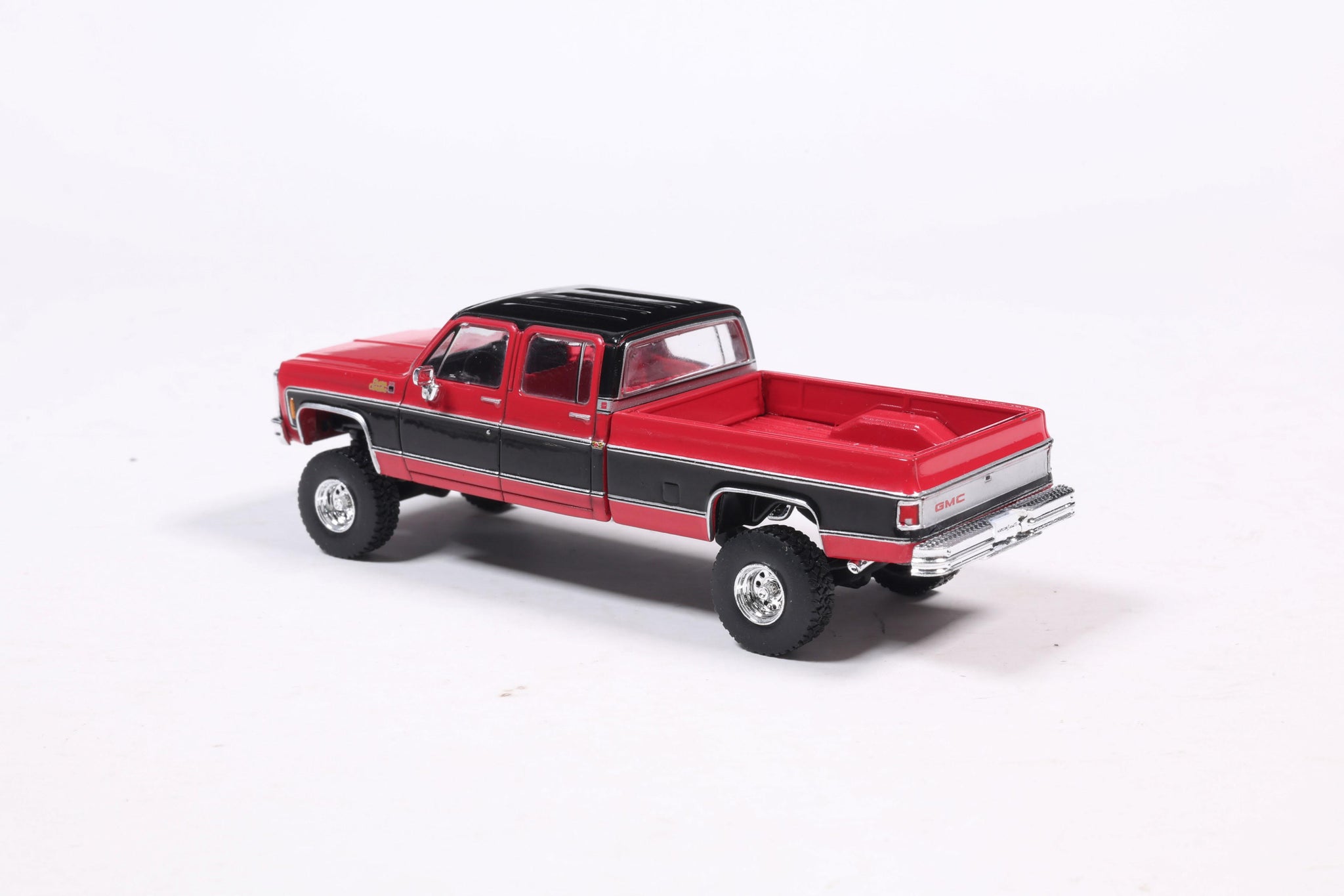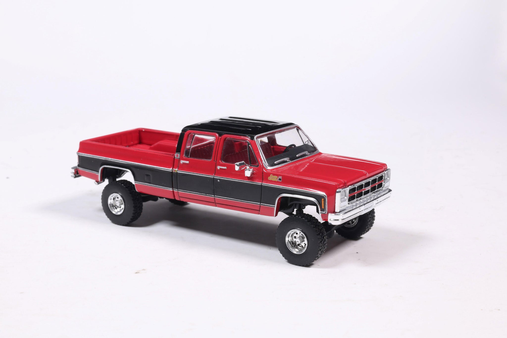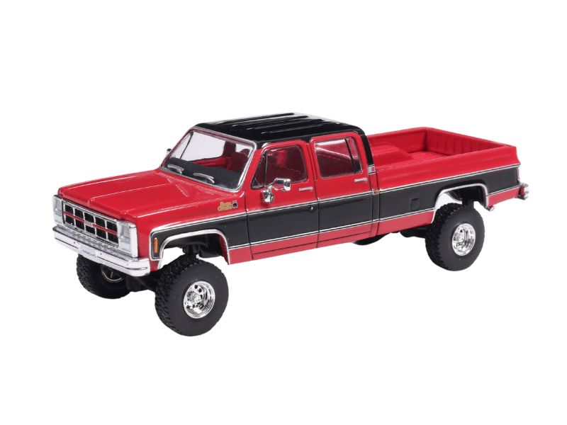 PRE-ORDER 1980 GMC Sierra Classic K3500 Wideside Crew Cab Lifted Two-Tone Cardinal Red & Black Diecast 1:64 Scale Model - Karson Diecast IAPR1023