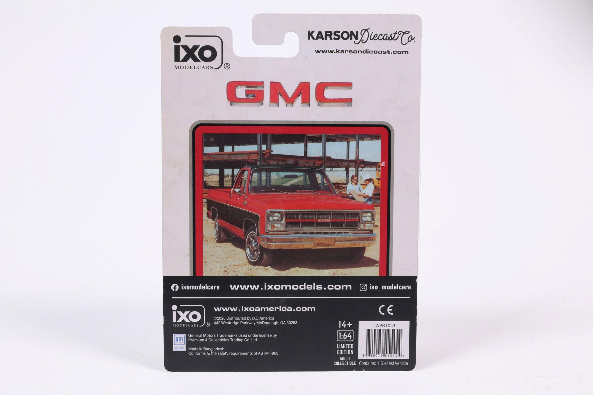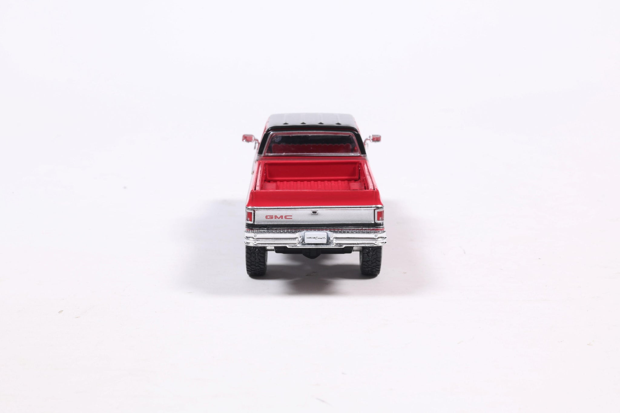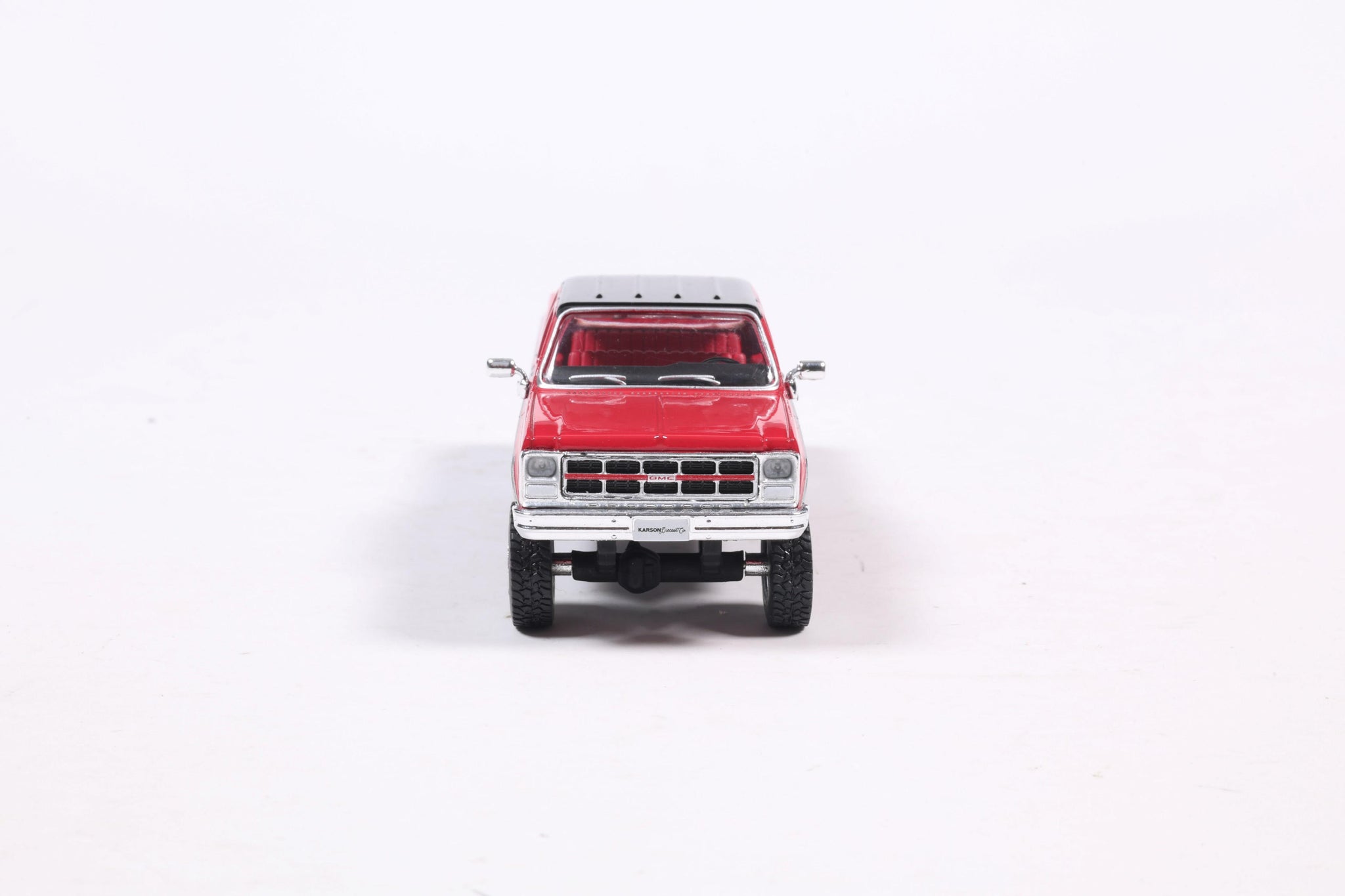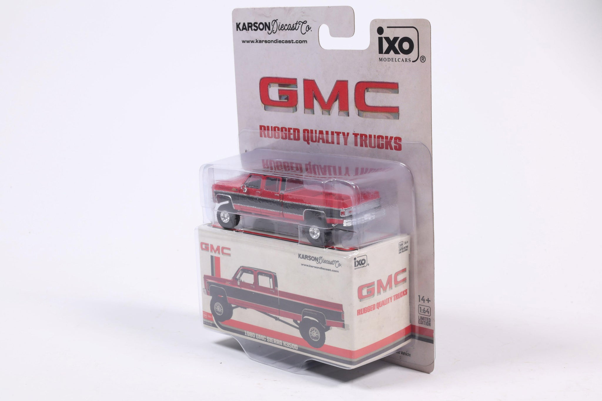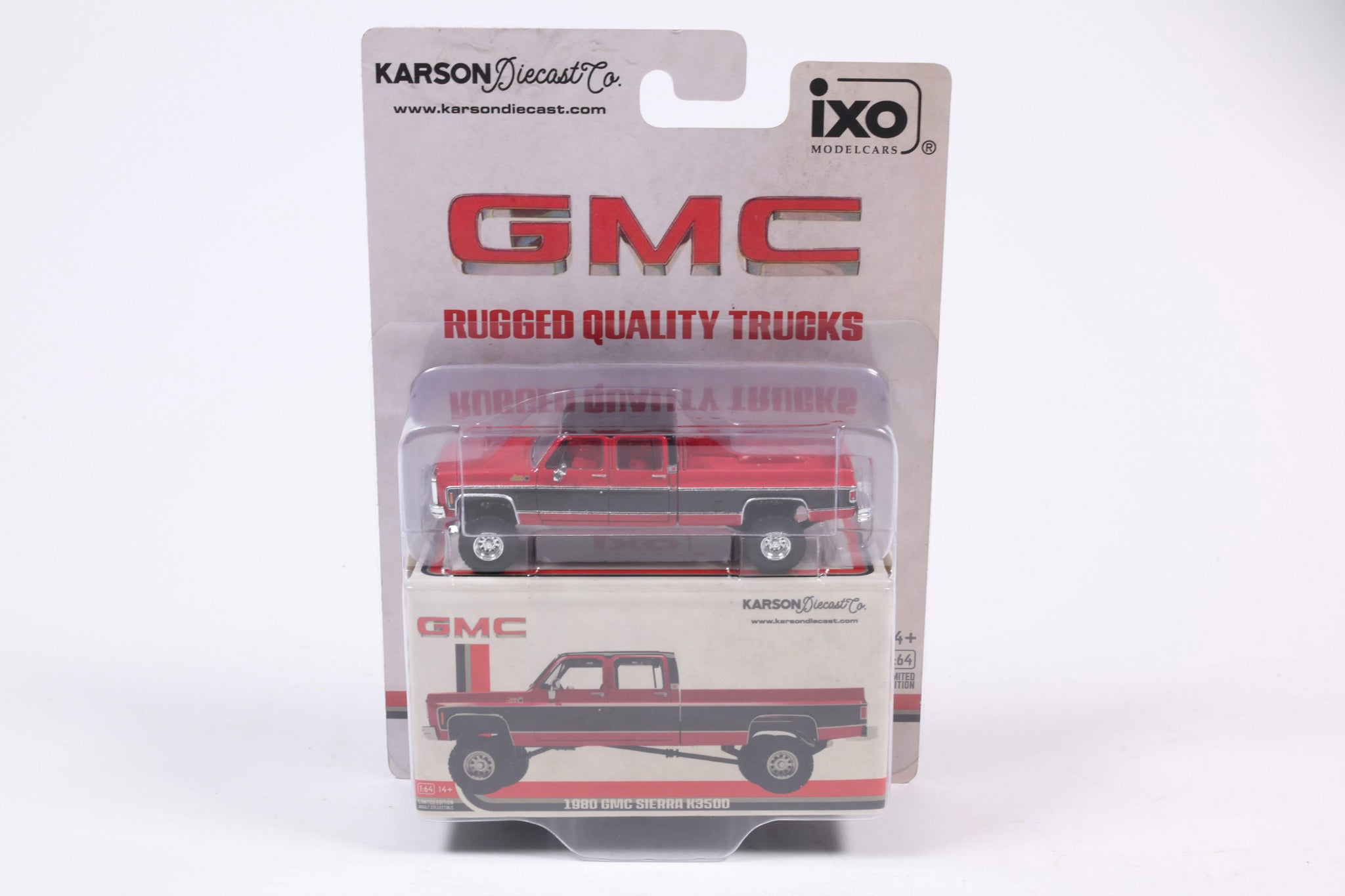 PRE-ORDER 1980 GMC Sierra Classic K3500 Wideside Crew Cab Lifted Two-Tone Cardinal Red & Black Diecast 1:64 Scale Model - Karson Diecast IAPR1023