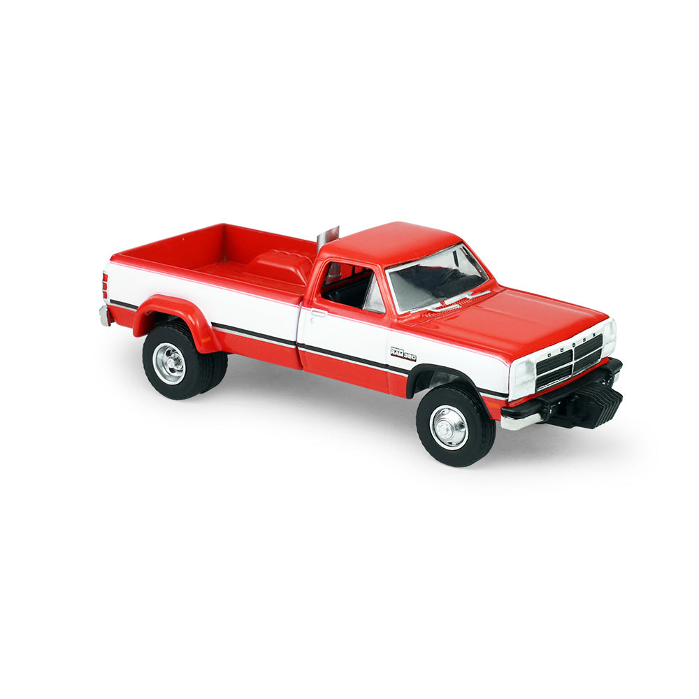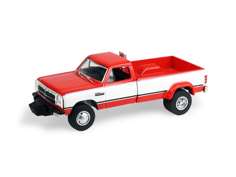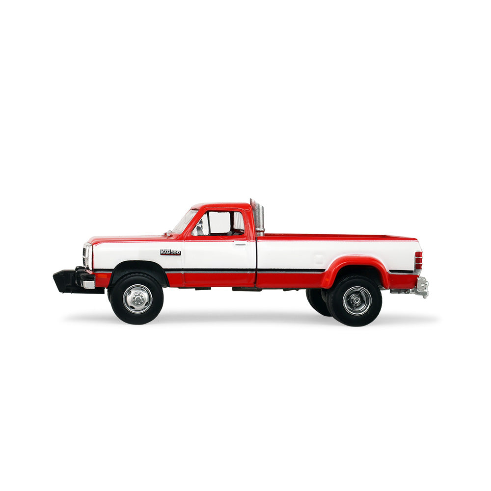 PRE-ORDER 1993 Dodge Ram D350 Dually - Red and White w/ Exhaust + Bumper Weights (Dually Drivers Series 17) Diecast 1:64 Scale Model - Greenlight 46170C