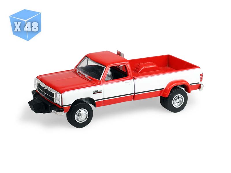 PRE-ORDER - 48 PACK 1993 Dodge Ram D350 Dually - Red and White w/ Exhaust + Bumper Weights (Dually Drivers Series 17) Diecast 1:64 Scale Model - Greenlight 46170C