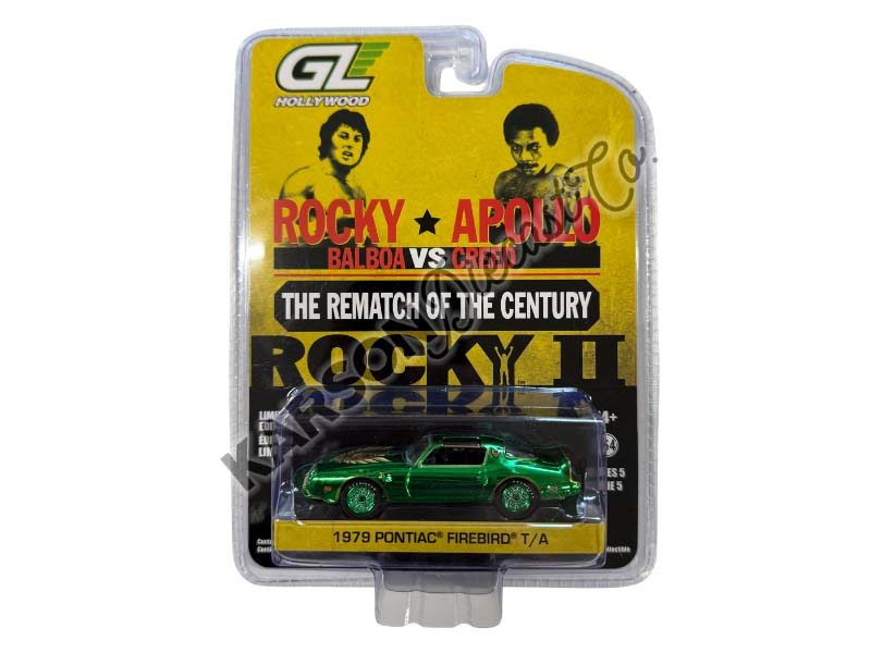 GREEN CHROME CHASE 1979 Pontiac Firebird Trans Am - Rocky II (Hollywood Series 5) Diecast 1:64 Scale Model - Greenlight 44650C