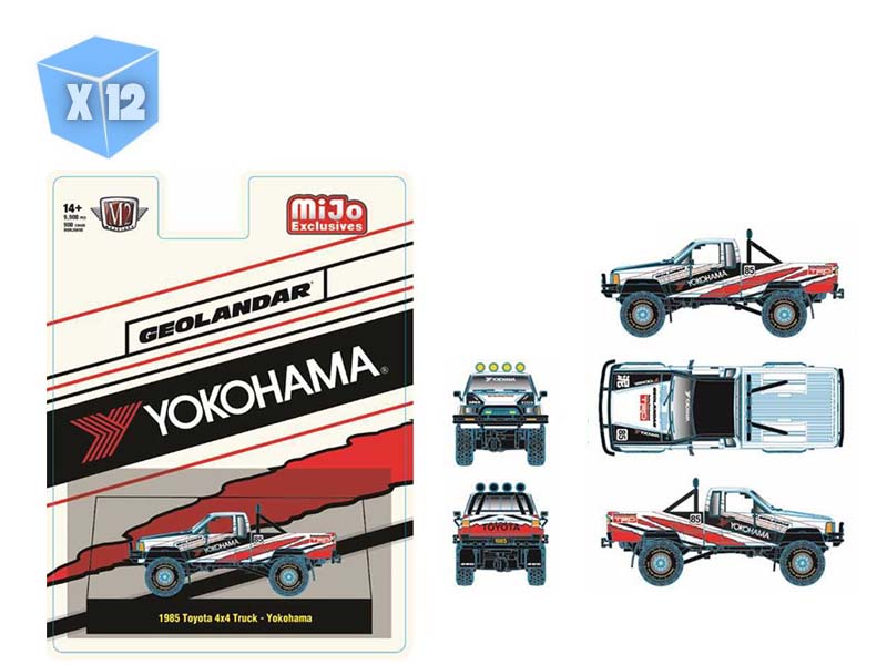 PRE-ORDER - 12 PACK 1985 Toyota 4×4 Off-Road Pickup Yokohama Geolandar – White Diecast 1:64 Scale Model - M2 Machines 31500-MJS101