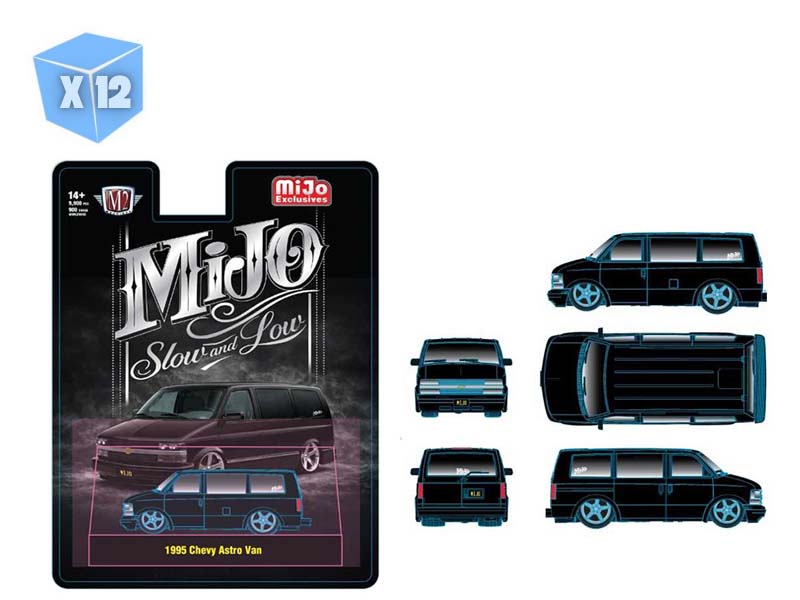 PRE-ORDER - 12 PACK 1995 Chevrolet Astro Van Custom Slow & Low – Black Diecast 1:64 Scale Model - M2 Machines 31500-MJS102