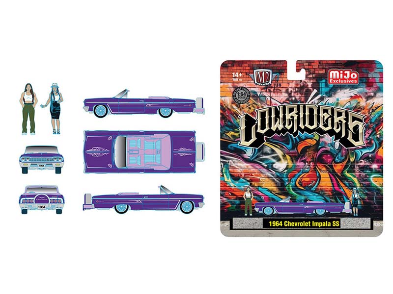 PRE-ORDER 1964 Chevrolet Impala SS Convertible Lowriders w/ 2 Ladies Figures – Metallic Purple Diecast 1:64 Scale Model - M2 Machines 67500-MJS02