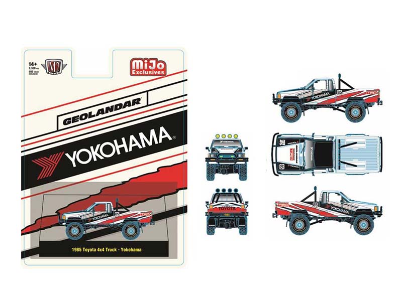 PRE-ORDER 1985 Toyota 4×4 Off-Road Pickup Yokohama Geolandar – White Diecast 1:64 Scale Model - M2 Machines 31500-MJS101
