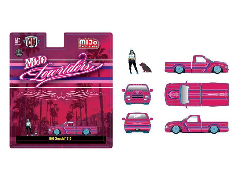 PRE-ORDER 1995 Chevrolet S10 Lowriders w/ Girl & Pitbull Dog Figures – Pink Diecast 1:64 Scale Model - M2 Machines 67500-MJS05
