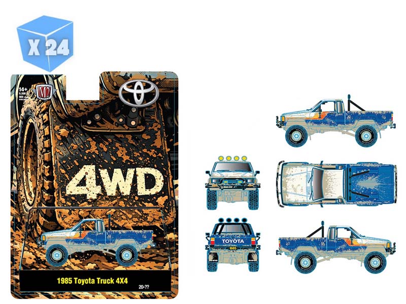 PRE-ORDER - 24 PACK 1985 Toyota Truck 4×4 Off Road – Blue Muddy Diecast 1:64 Scale Model - M2 Machines 31500-HS82