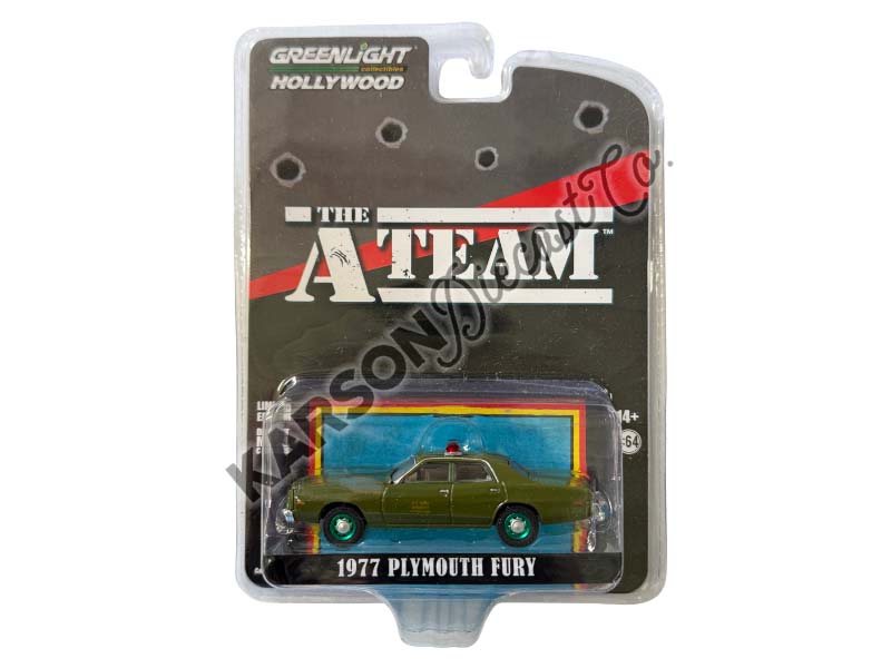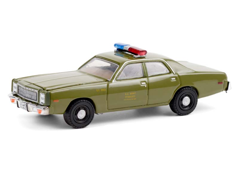 CHASE 1977 Plymouth Fury U.S. Army Police Army Green - The A-Team TV Series (Hollywood Special Edition) Diecast 1:64 Scale Model - Greenlight 44865A