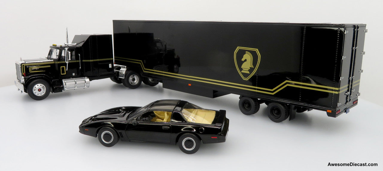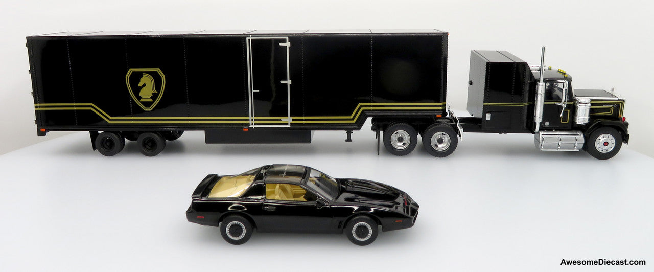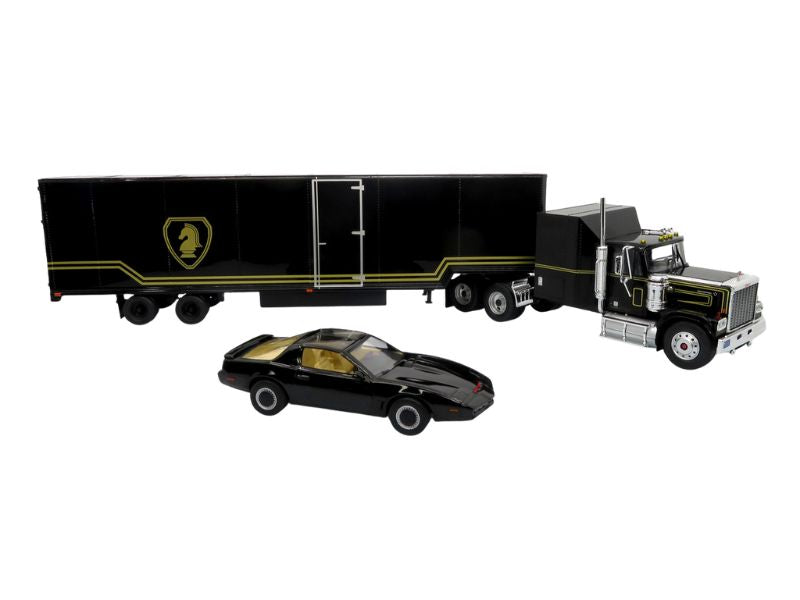 1980 GMC General Tractor w/ Trailer & 1982 Pontiac Firebird Trans Am: Knight Set Diecast 1:43 Scale Model - Iconic Replicas 43-0639