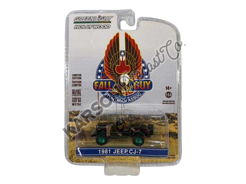 CHASE 1981 Jeep CJ-7 - Camouflage Fall Guy Stuntman Association (Hollywood Special Edition) Diecast 1:64 Scale Model - Greenlight 44965E
