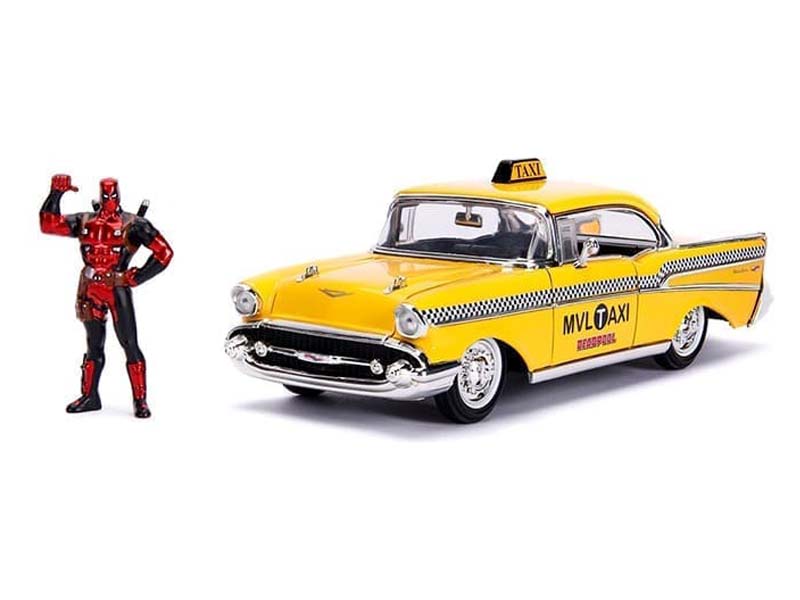 1957 Chevrolet Bel Air Taxi w/ Deadpool – Marvel Avenger (Hollywood Ride) Diecast 1:24 Scale Model - Jada 30290