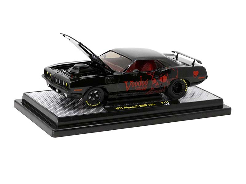 1971 PLymouth HEMI Cuda Voodoo – Metallic Black (Release 111) Diecast 1:24 Scale Model - M2 Machines 40300-111A