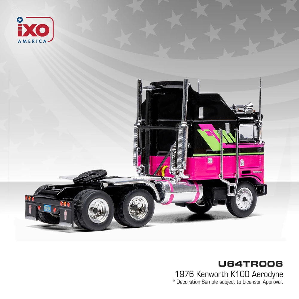 1976 Kenworth K100 Aerodyne - Black and Pink Diecast 1:64 Scale Model - IXO America U64TR006