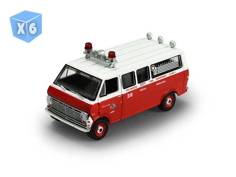 6 PACK 1969 Ford Econoline Ambulance - Los Angeles Fire Department (Fire & Rescue Series 5) Diecast 1:64 Scale Model - Greenlight 67070B