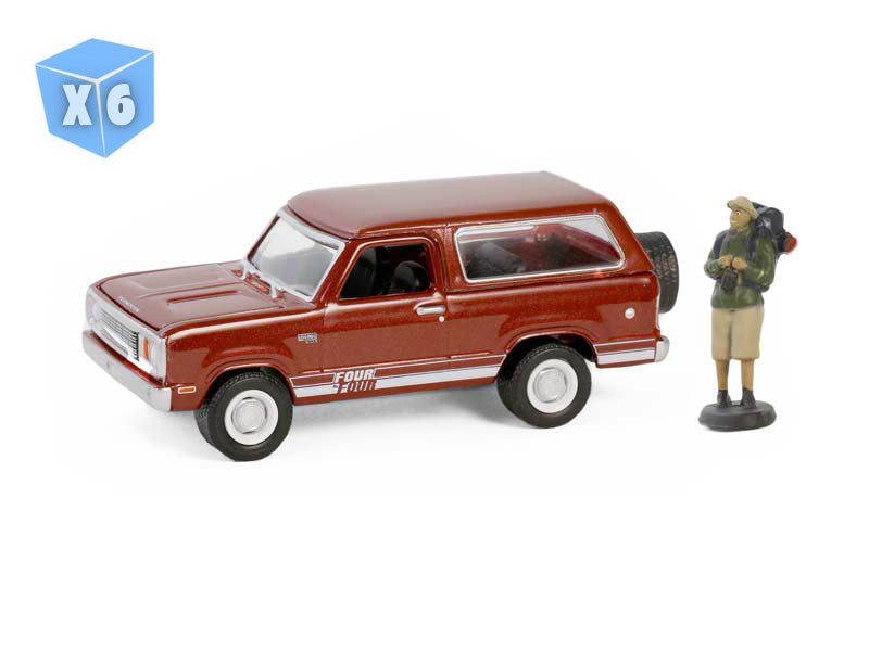 6 PACK 1978 Plymouth Trail Duster w/ Backpacker Figure – Canyon Red Sunfire (The Hobby Shop Series 16) Diecast 1:64 Scale Model - Greenlight 97160C