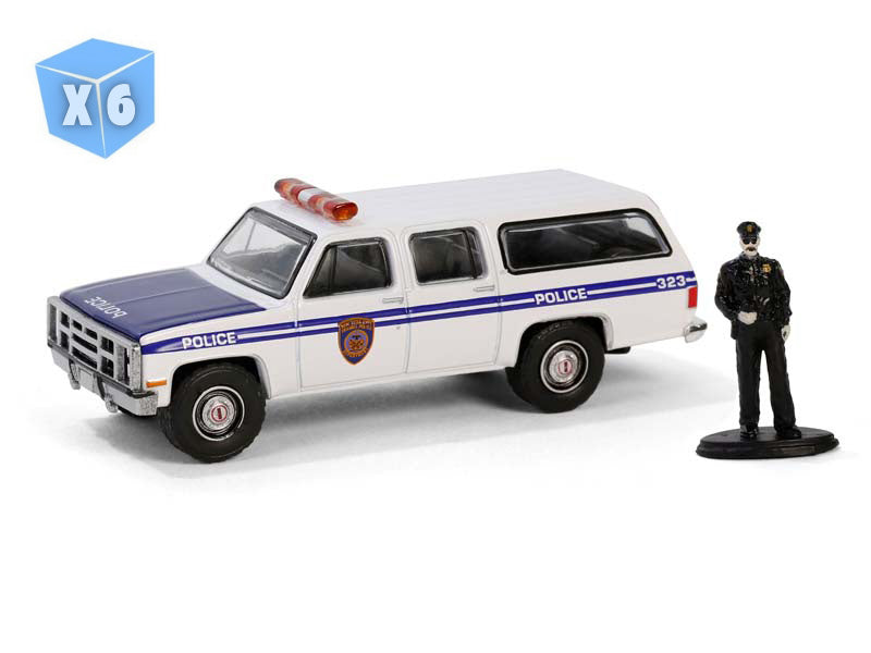 6 PACK 1985 GMC Suburban 2500 – New York City Transit Police w/ Officer Figure (The Hobby Shop Series 16) Diecast 1:64 Scale Model - Greenlight 97160D