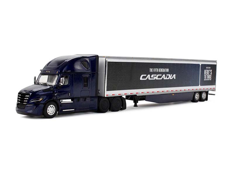 Freightliner Fifth Generation Cascadia Raised Roof Sleeper - Black and Blue w/ 53' Utility Trailer Diecast 1:64 Scale Model - DCP 60-1999