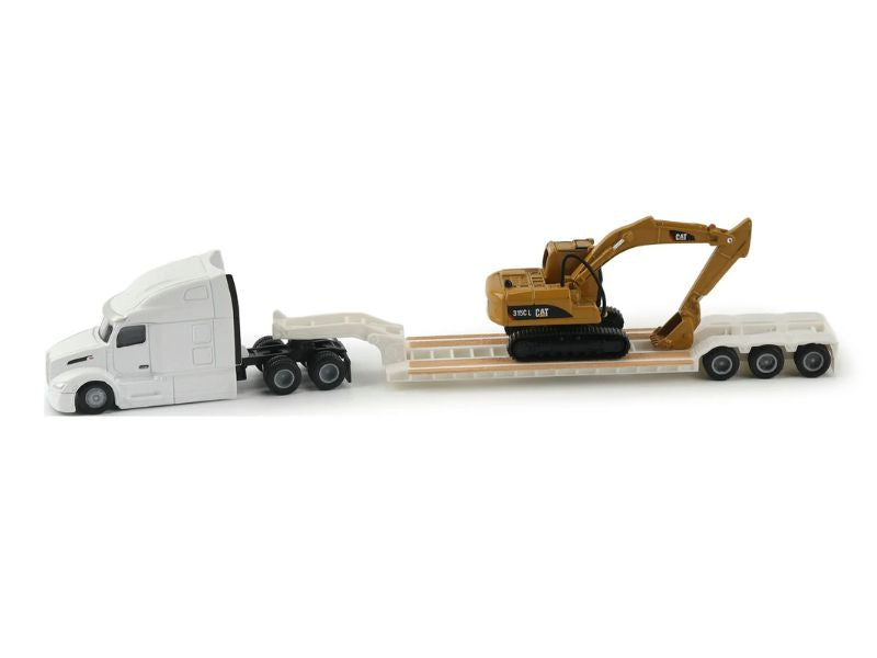 Peterbilt 579 Tractor w/ Lowboy Trailer and CAT 315C Excavator 1:87 Scale Model - Diecast Masters 84423