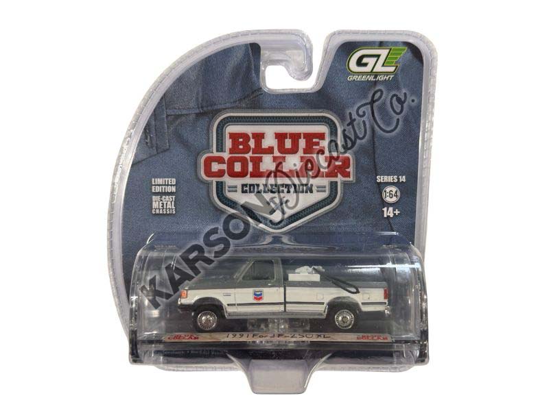 RAW CHASE 1991 Ford F-250 XL – Chevron (Blue Collar Collection Series 14) Diecast 1:64 Scale Model - Greenlight 35300D