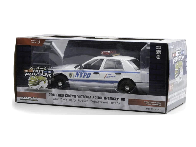 2011 Ford Crown Victoria Police Interceptor - New York City Police Department (Hot Pursuit) Diecast 1:24 Scale Model - Greenlight 85513
