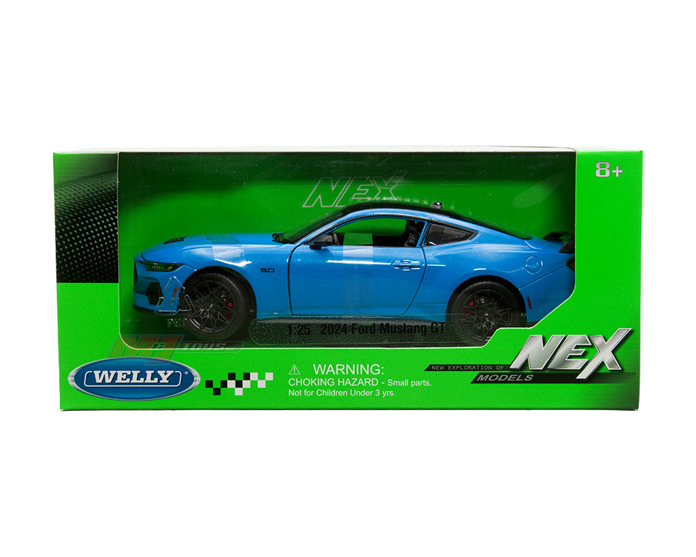 2024 Ford Mustang GT – Blue w/ Black Roof (NEX) Diecast 1:24 Scale Model - Welly 24123BL