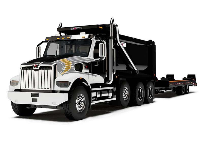 Western Star 49X w/ Ox Bodies Dump & Beaver Tail Trailer - White/Black Diecast 1:64 Scale Model - DCP 60-1885