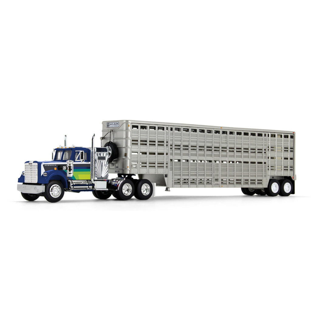 White Western Star 4900 w/ 36'' Vintage Sleeper w/ 45' Wilson Vintage Livestock Trailer Diecast 1:64 Scale Model - DCP 60-1944