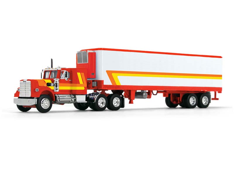 White Western Star 4900 w/ 36'' Vintage Sleeper w/ 40' Vintage Refrigerated Trailer Diecast 1:64 Scale Model - DCP 60-1945