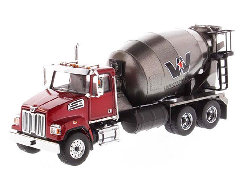 Western Star 4700 SF Concrete Mixer Metallic Red w/ Gray Body (Transport Series) 1:50 Scale Model - Diecast Masters 71033