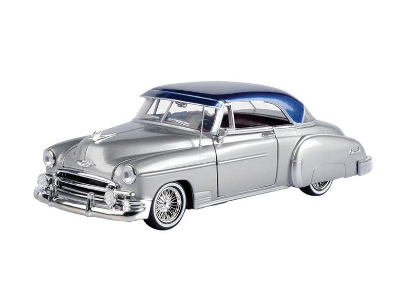 1950 Chevrolet Bel Air Lowrider Silver w/ Blue Top (Get Low) Diecast 1:24 Scale Model – Motormax