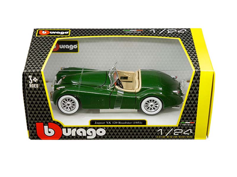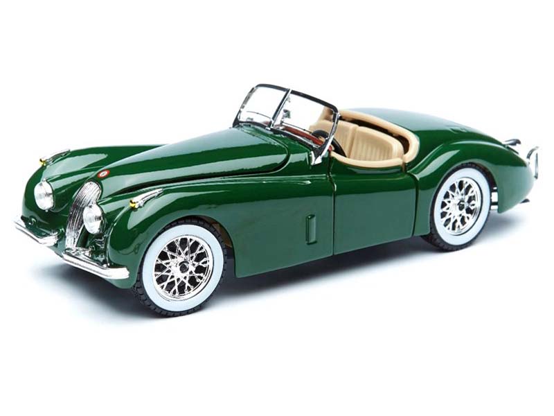 1951 Jaguar XK120 Green Roadster Diecast 1:24 Scale Model - Bburago 22018GRN