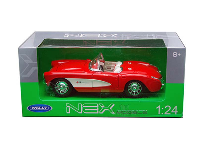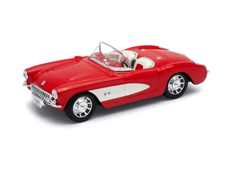 1957 Chevrolet Corvette Convertible - Red and White w/ White Interior (NEX) Diecast 1:24 Scale Model Car – Welly