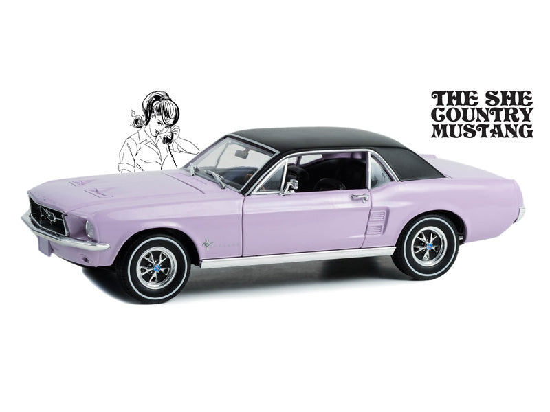 1967 Ford Mustang Coupe She Country Special - Bill Goodro Ford Denver Colorado - Evening Orchid Diecast 1:18 Scale Model - Greenlight 13662