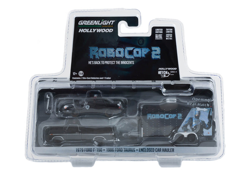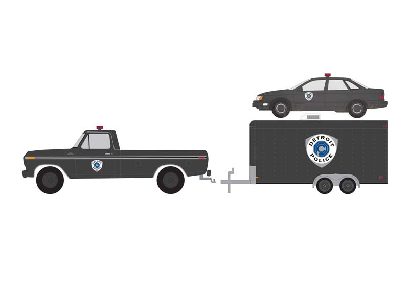 1979 Ford F-150 w/ 1986 Ford Taurus Detroit Police & Car Hauler RoboCop 2 (Hollywood Hitch & Tow) Series 11 Diecast 1:64 Model - Greenlight 31150A