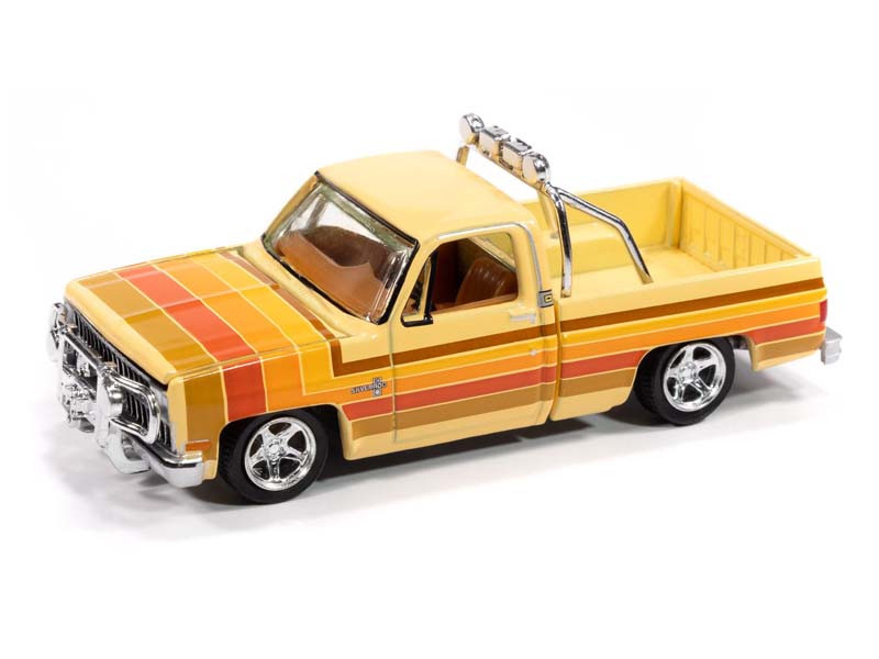 1981 Chevrolet Silverado Fleetside Lowered - Custom Cream w/ 5 Color Stripe Graphics Diecast 1:64 Scale Model - Auto World AWSP191