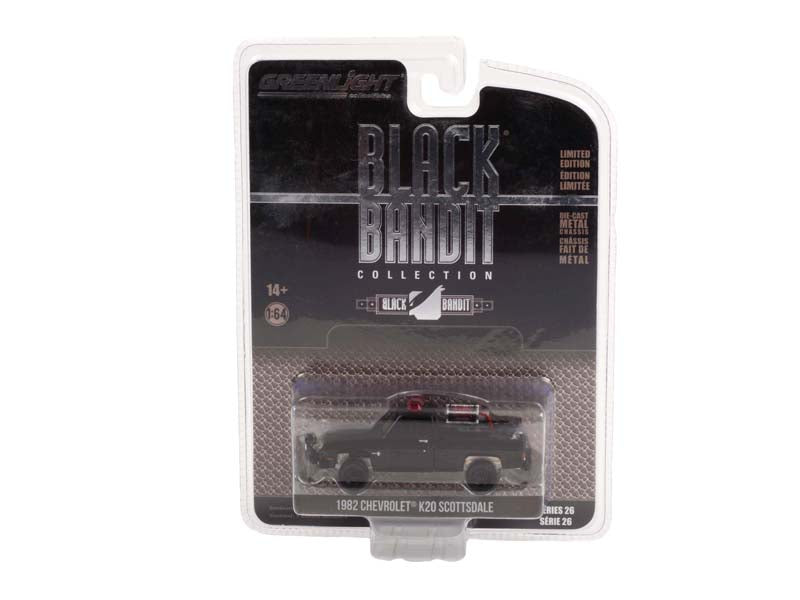 1982 Chevrolet K20 Scottsdale - Fire Department w/ Fire Equipment, Hose and Tank (Black Bandit) Series 26 Diecast 1:64 Model – Greenlight