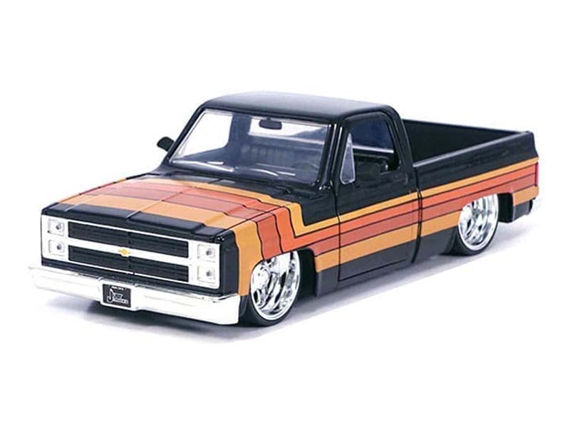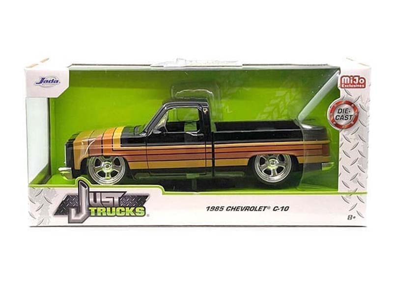 1985 Chevrolet C10 Pickup w/ Paradox Wheels – Black w/ Stripes (Just Trucks) Diecast 1:24 Scale Model - Jada 35854