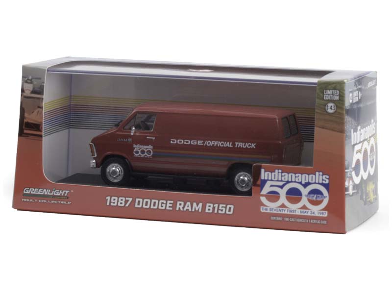 1987 Dodge Ram B150 Van 71st Annual Indianapolis 500 Mile Race Official Truck Diecast 1:43 Scale Model - Greenlight 86576