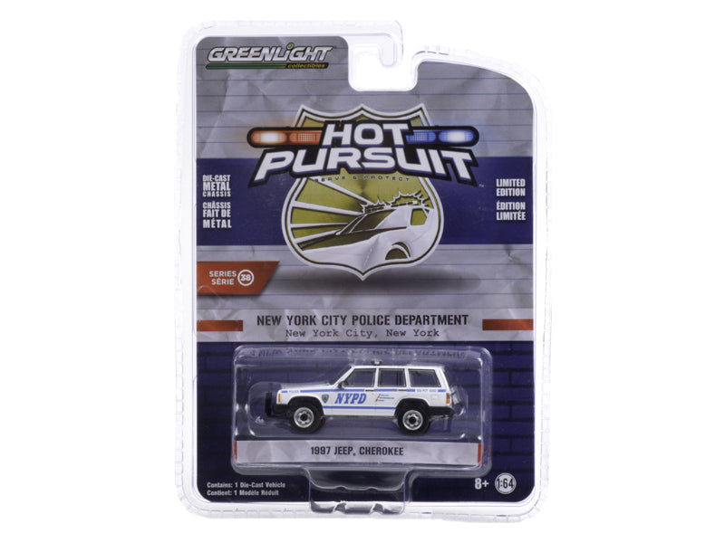 1997 Jeep Cherokee New York City Police Dept NYPD "Hot Pursuit Series 38" Diecast 1:64 Scale Model – Greenlight