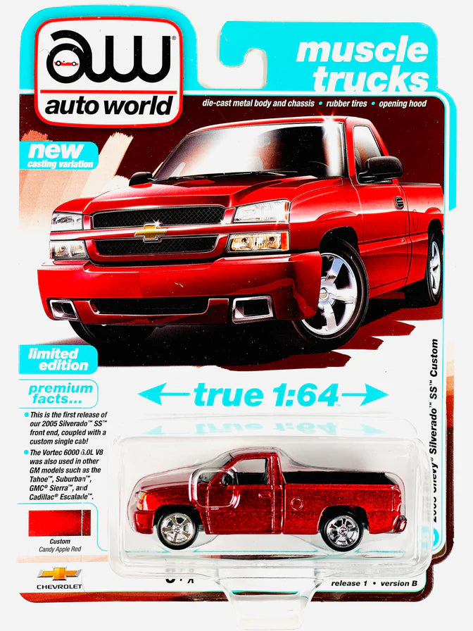 2005 Chevy Silverado SS Custom (Single Cab) Candy Apple Red Metallic (Premium 2025 Release Version B) Diecast 1:64 Scale Model - Auto World AWSP190B