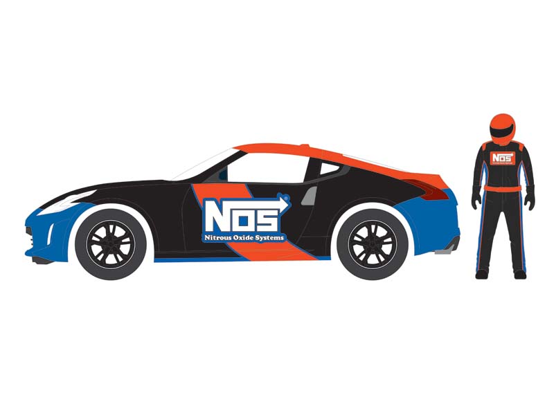 2020 Nissan 370Z w/ Race Car Driver - NOS Nitrous Oxide Systems (The Hobby Shop Series 16) Diecast 1:64 Scale Model - Greenlight 97160F