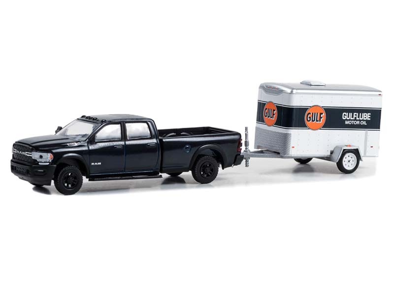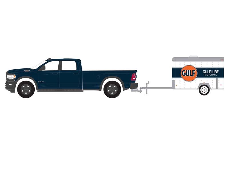 2023 Ram 2500 - Gulf Oil w/ Small Gulflube Motor Oil Cargo Trailer (Hitch & Tow Series 29) Diecast 1:64 Scale Model - Greenlight 32290D