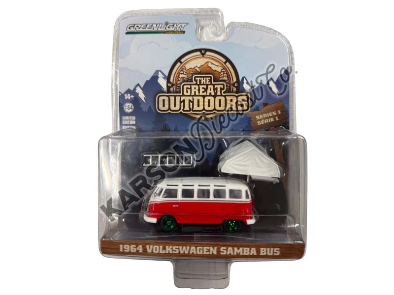 1964 Volkswagen Samba Bus w/ Camp'otel Cartop Sleeper Tent (The Great Outdoors) Series 1 Diecast 1:64 Scale Model – Greenlight
