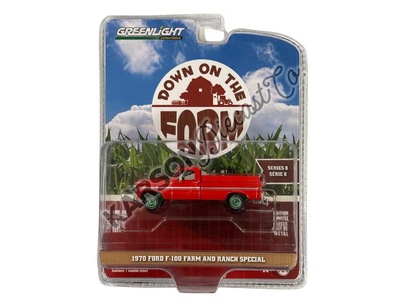 CHASE 1970 Ford F-100 Farm and Ranch Special w/ Cargo Boards - Candy Apple Red (Down on the Farm Series 8) Diecast 1:64 Scale Model - Greenlight 48080B