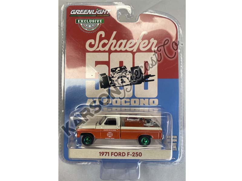 1971 Ford F-250 w/ Fire Equipment - Schaefer 500 at Pocono Official Truck Diecast Scale 1:64 Scale Model - Greenlight