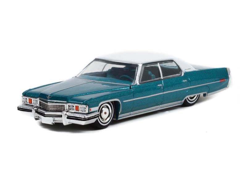 1973 Cadillac Sedan deVille - Teal w/ White Roof "California Lowriders" Series 1 Diecast 1:64 Scale Model Cars – Greenlight